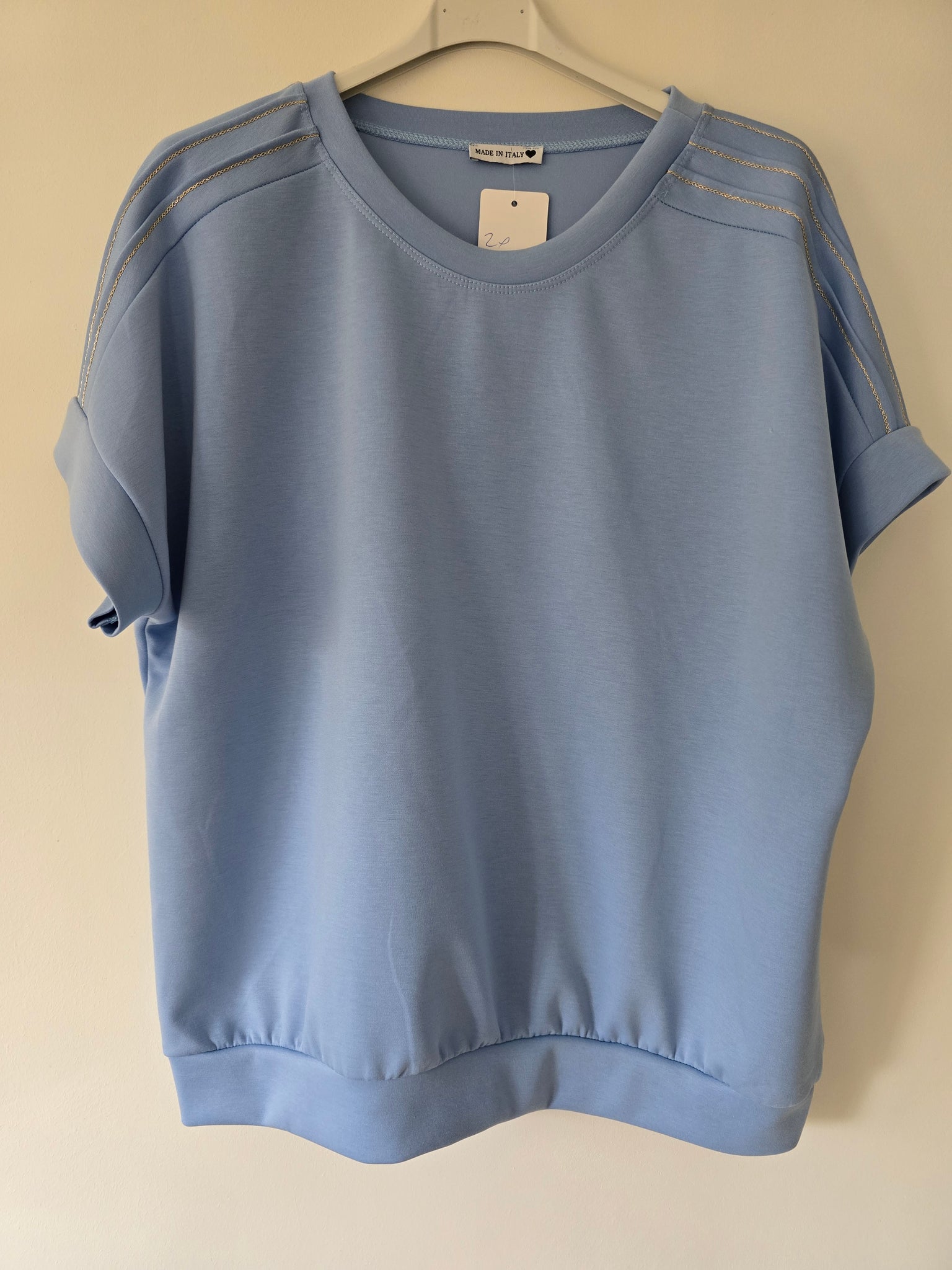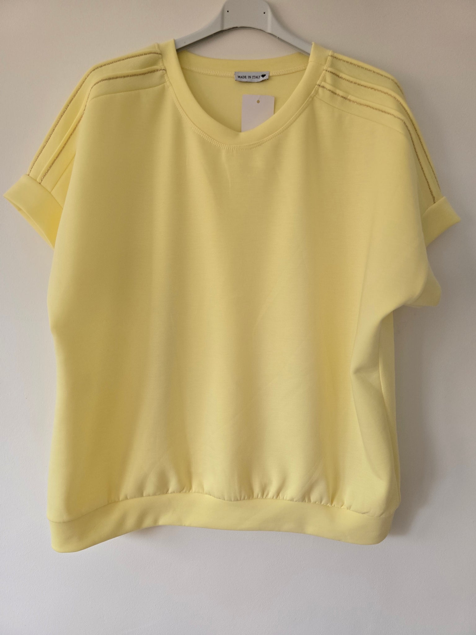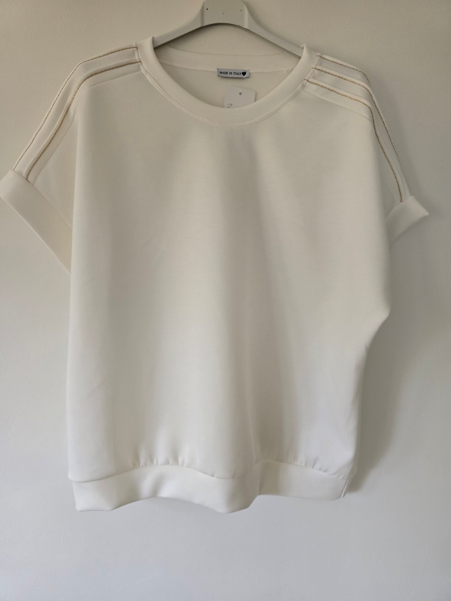 Matière sweat viscoce avec 3 bandes lurex epaules .