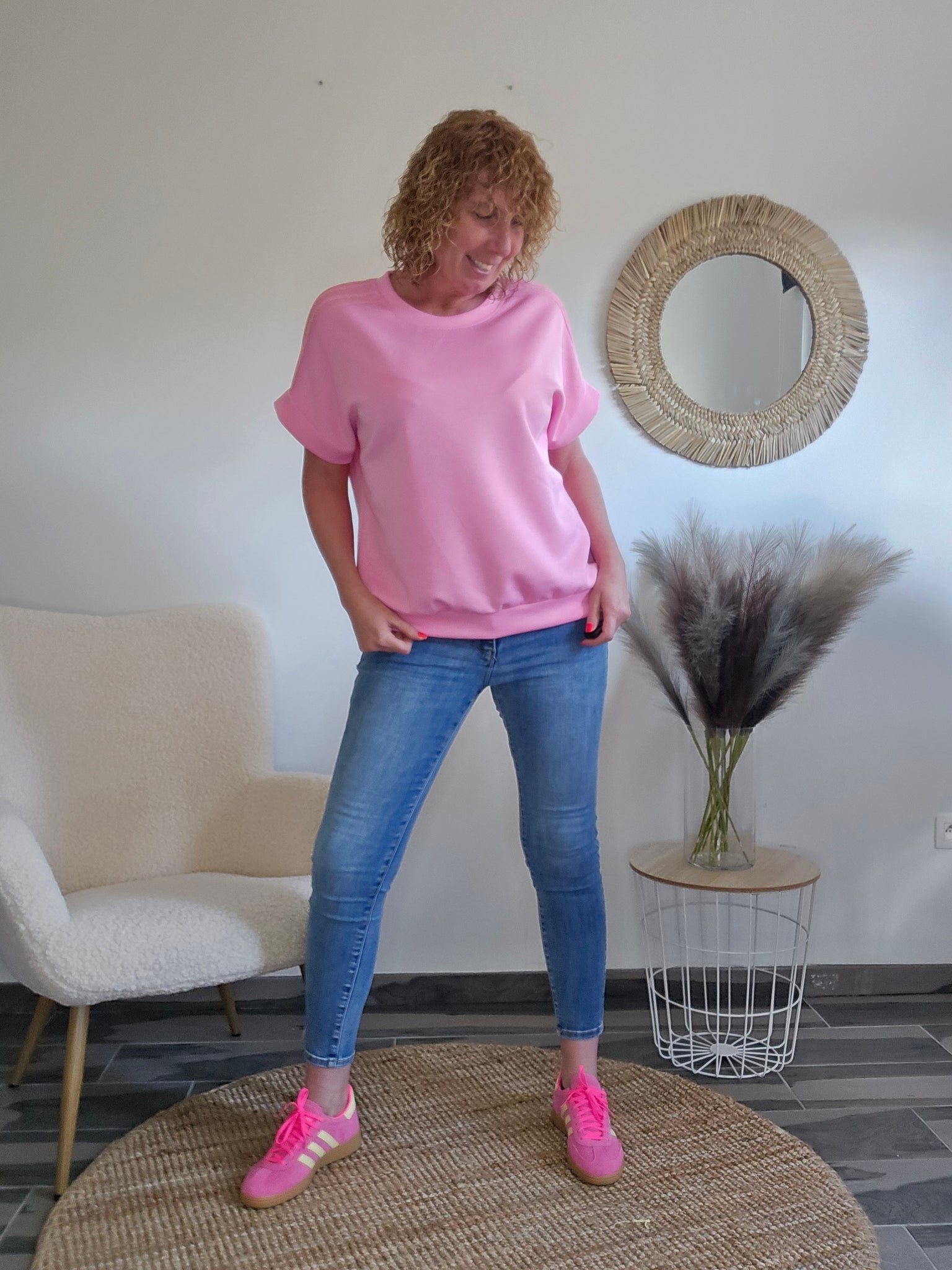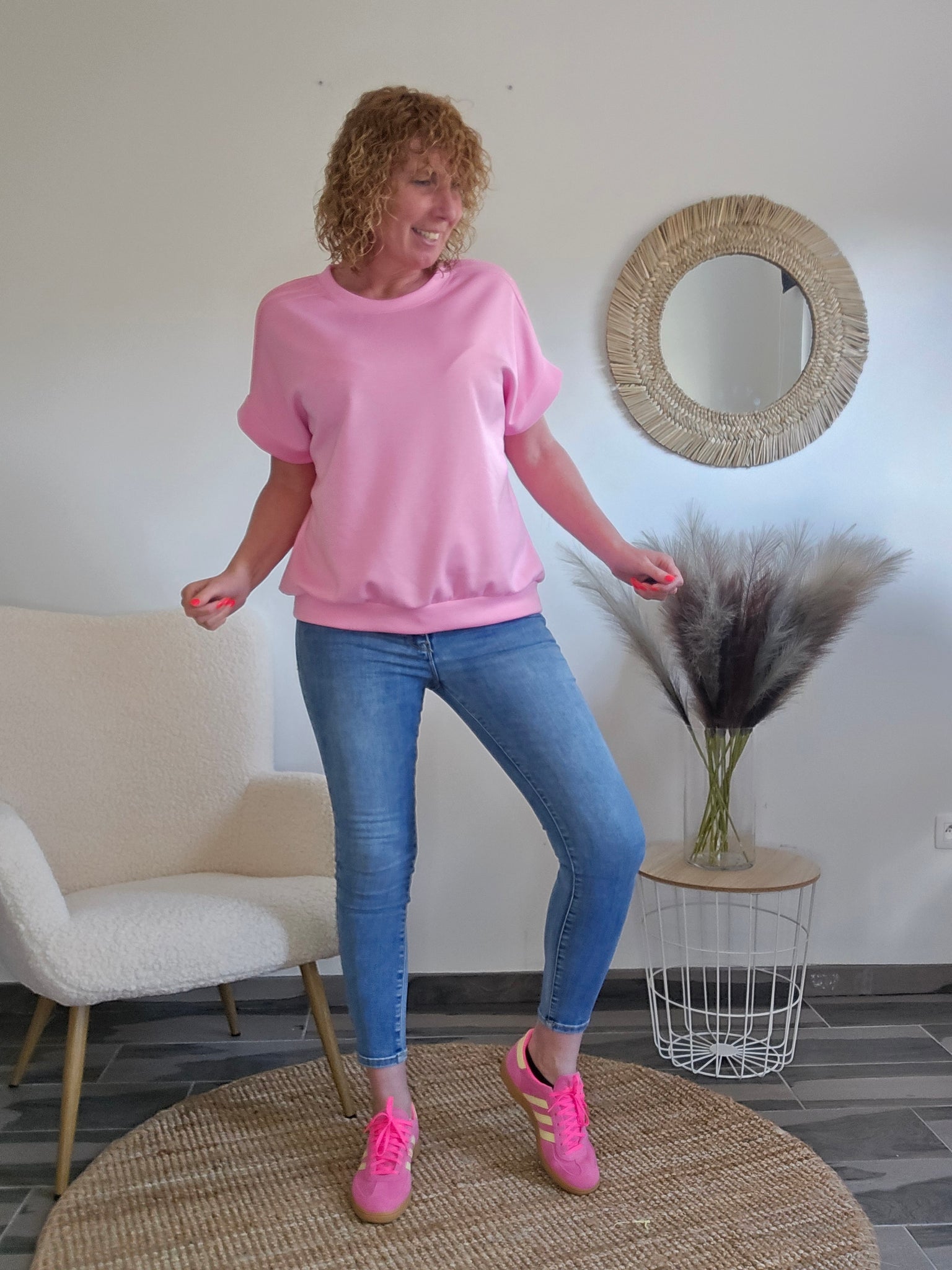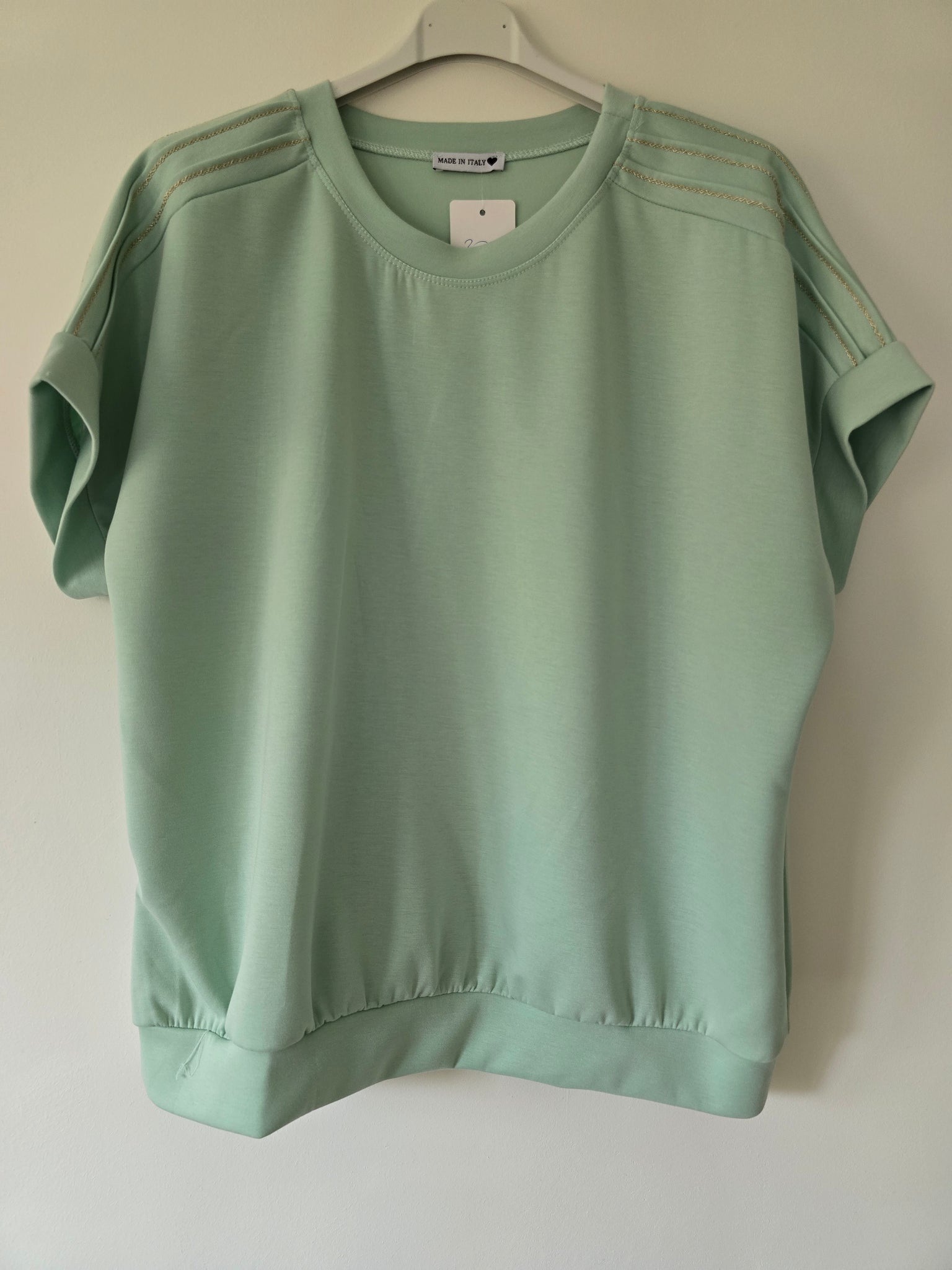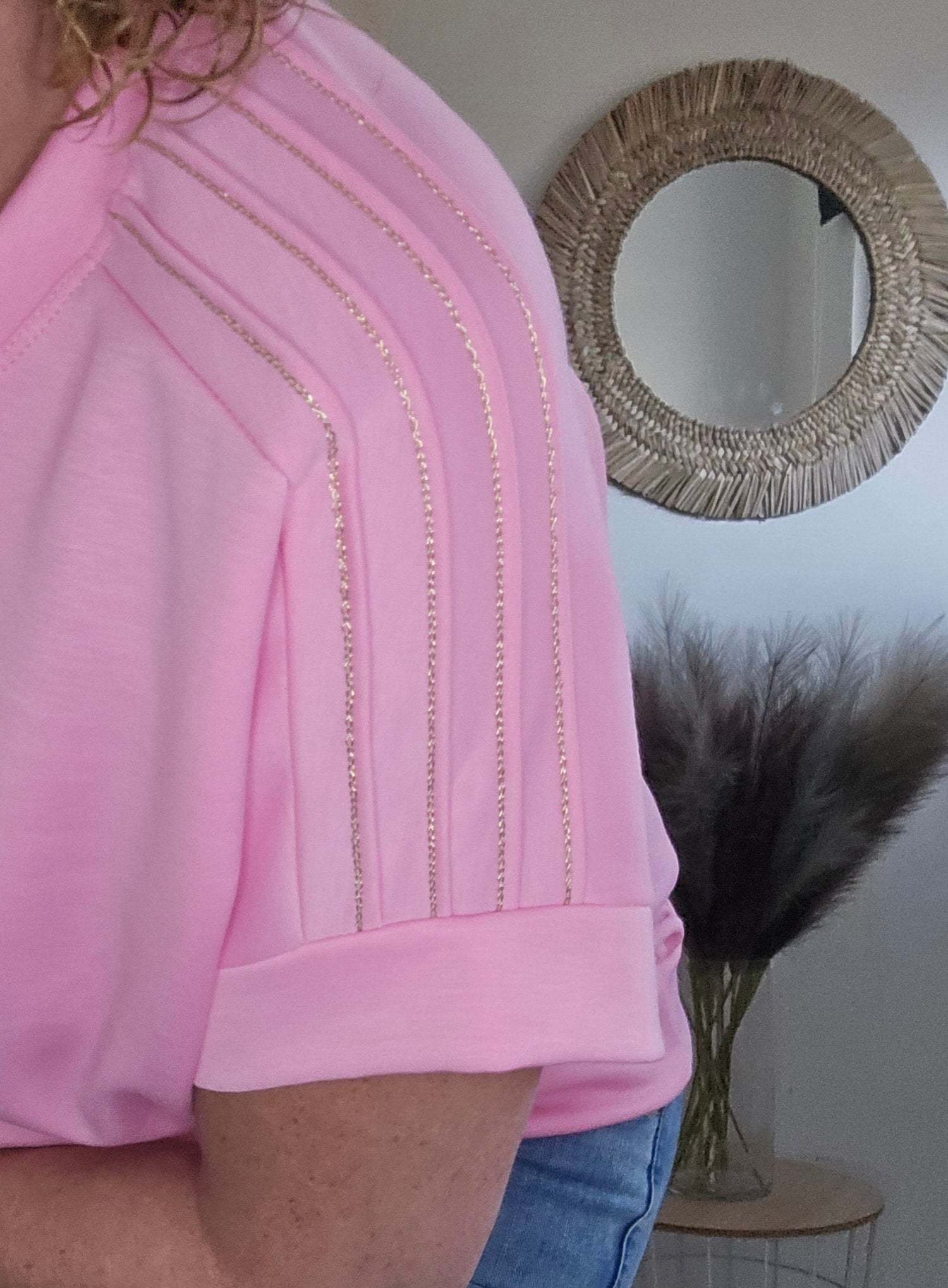 Matière sweat viscoce avec 3 bandes lurex epaules .